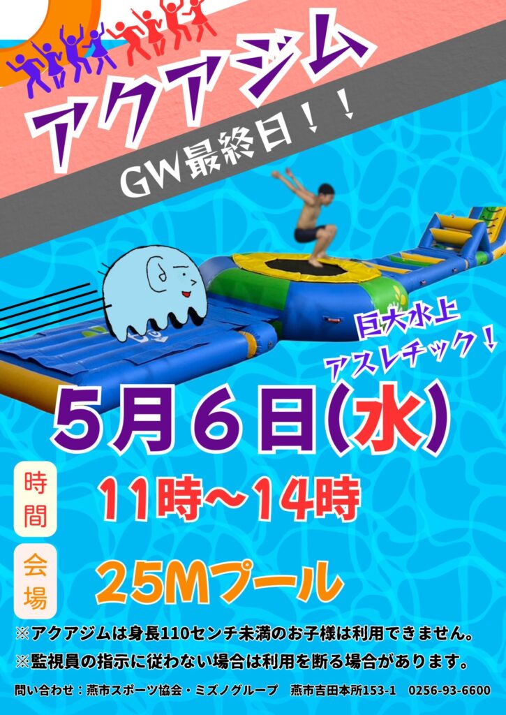ゴールデンウィーク期間中水上アスレチックの「アクアジム」やキッチンカーの来店イベントがございます、皆様のご利用をお待ちしております。