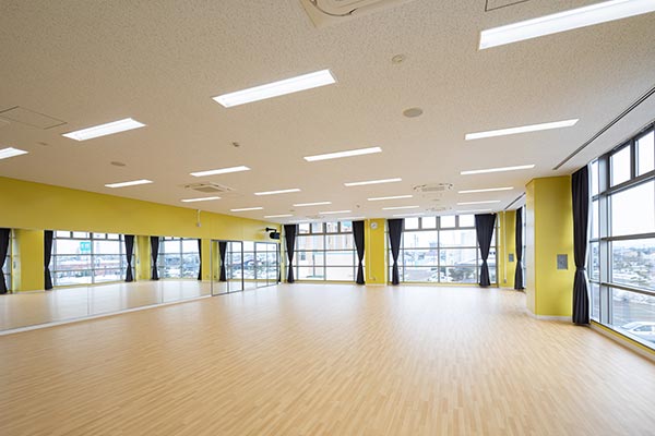 大きなスタジオで元気な指導員とリズムに乗って身体を動かしましょう。仲の良い仲間と一緒にテンションアップ!